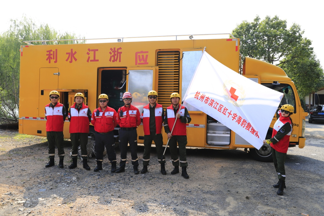 此前,杭州市滨江区红十字海豹救援队还派出了队员参加省水利厅防汛总队在安吉组织的为期三天的防汛实战训练,并在钱塘江流域开展了汽油机排水泵的安装和抽水训练。