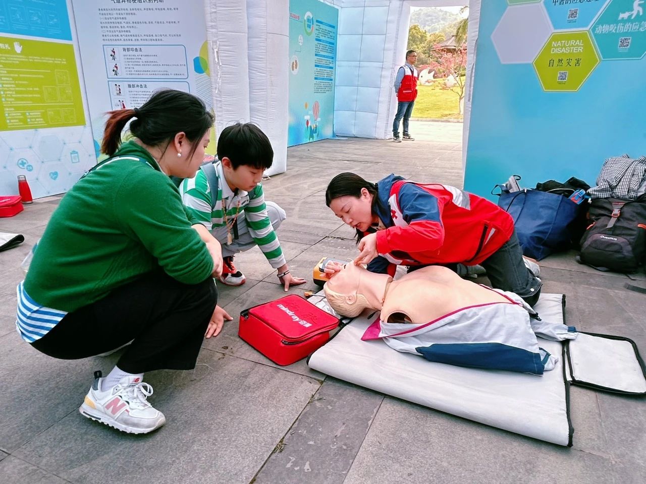 红十字生命教育流动体验馆吸引了众多市民参与。专业志愿者通过模拟演练、图文讲解等方式,向公众普及红十字历史、应急救护、造干捐献等知识,并手把手指导心肺复苏、AED使用等急救技能。“学习这些技能不仅能保护家人,关键时刻还能帮助他人,很有意义。”参与体验的李女士表示。