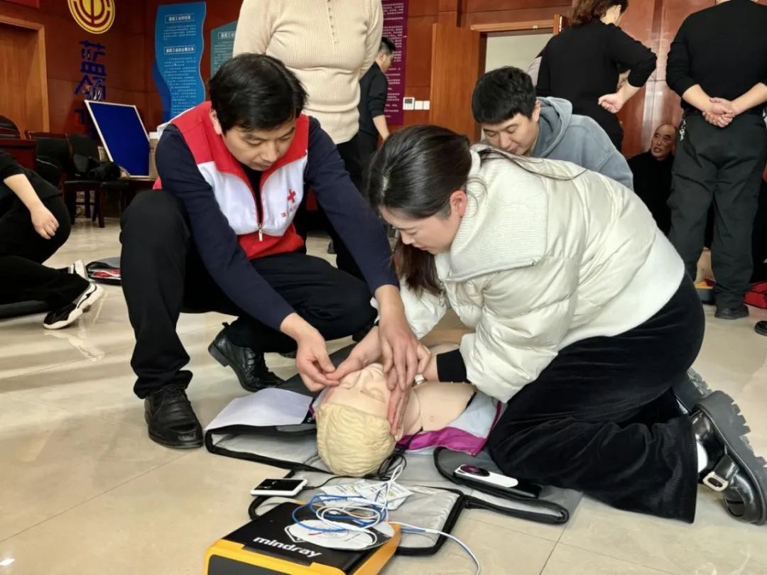 滨江区红十字会联合长河街道对来自长河街道新增的18个公共场所自动体外除颤器(AED)点位的100位配置人员进行了红十字救护员培训。