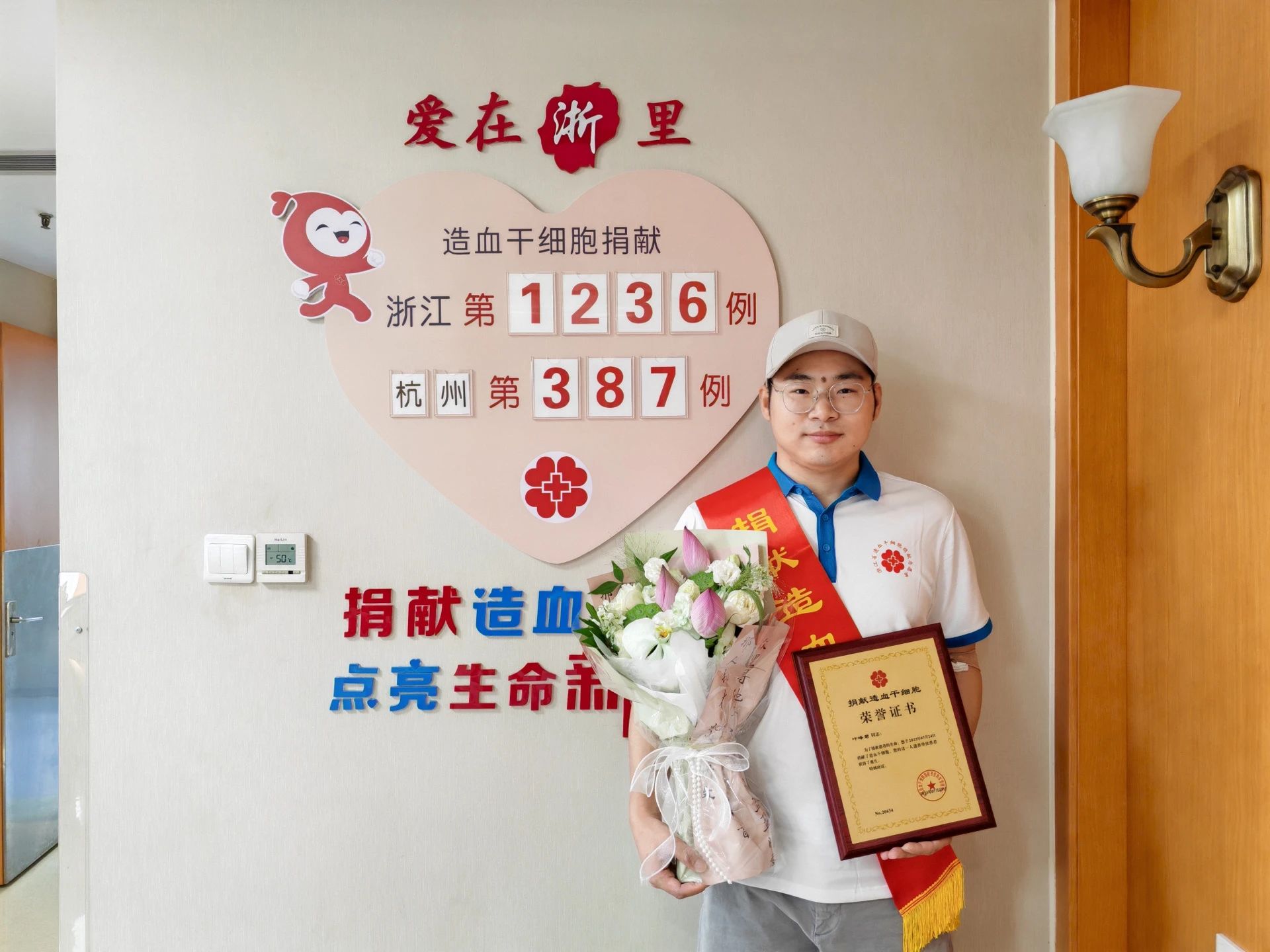 2025年4月22日来自杭州市水上运动中心的徐培川成功捐献造血干细胞混悬液251毫升成为浙江省第1195例杭州市第373例造血干细胞捐献者这位坚持献血22年累计献血量超5万毫升的硬汉以特殊的第130次献血完成人生中又一次重...